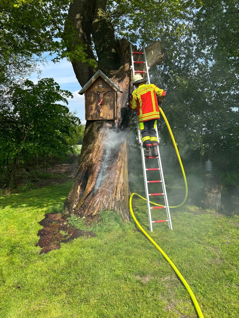 Um 15:28 Uhr wurde die Feuerwehr Essen zu einem Flächenbrand klein alarmiert. Unweit des Feuerwehrhauses ist ein Baum in Brand geraten. Auf Grund des schnellen Einreifens konnte schlimmeres verhindert werden. Der Baum wurde gelöscht und wir konnten gegen 17:00 Uhr die Einsatzstelle wieder verlassen.