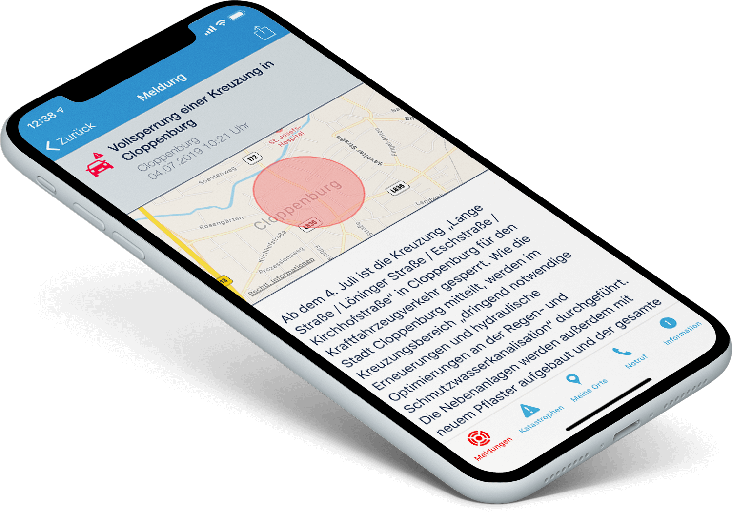 BIWAPP verfügt über eine Notruffunktion, welche neben den Notrufnummern der Polizei und Feuerwehr auch die Rufnummer des ärztlichen Bereitschaftsdienstes aufführt. Jede der drei Notrufnummern kann direkt in der App ausgewählt und dadurch angerufen werden.