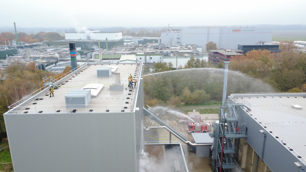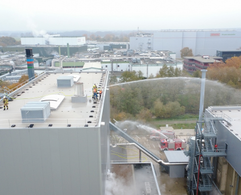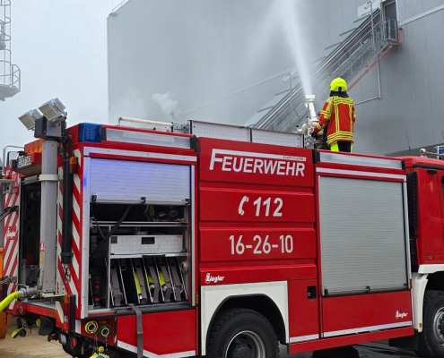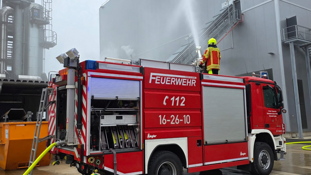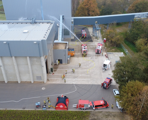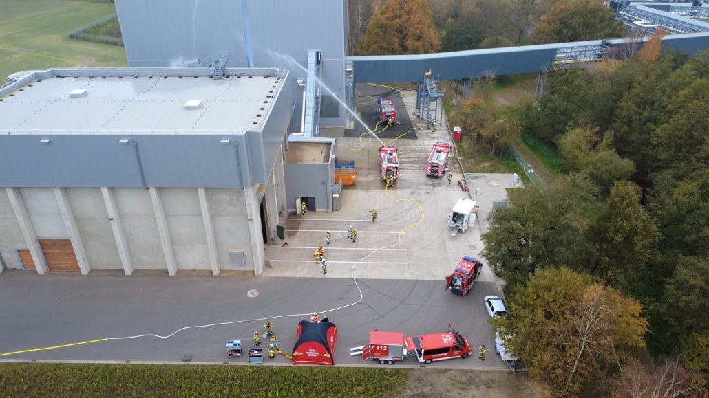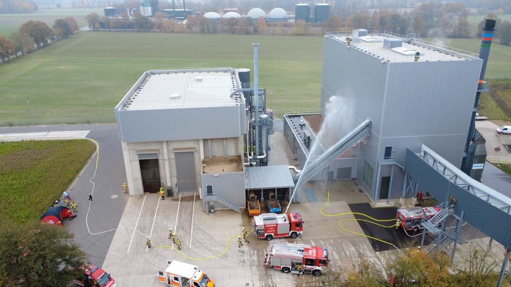 Gegen 10 Uhr verlauteten die Melder die Alarmmeldung „Verpuffung im Biomassekraftwerk“. Ein eher außergewöhnliches Stichwort und deswegen war es umso besser, dass wir dieses Szenario gemeinsam mit der Feuerwehr Bevern und der Feuerwehr Lüsche geübt haben.