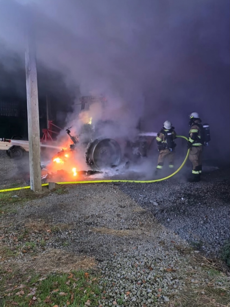 Am Freitagmorgen wurden wir gegen 07:25 Uhr zu einem brennenden Trecker in einer Halle gerufen. Schnellstmöglich machten wir uns auf den Weg zum Einsatzort, der im Ortsteil Brokstreek lag.